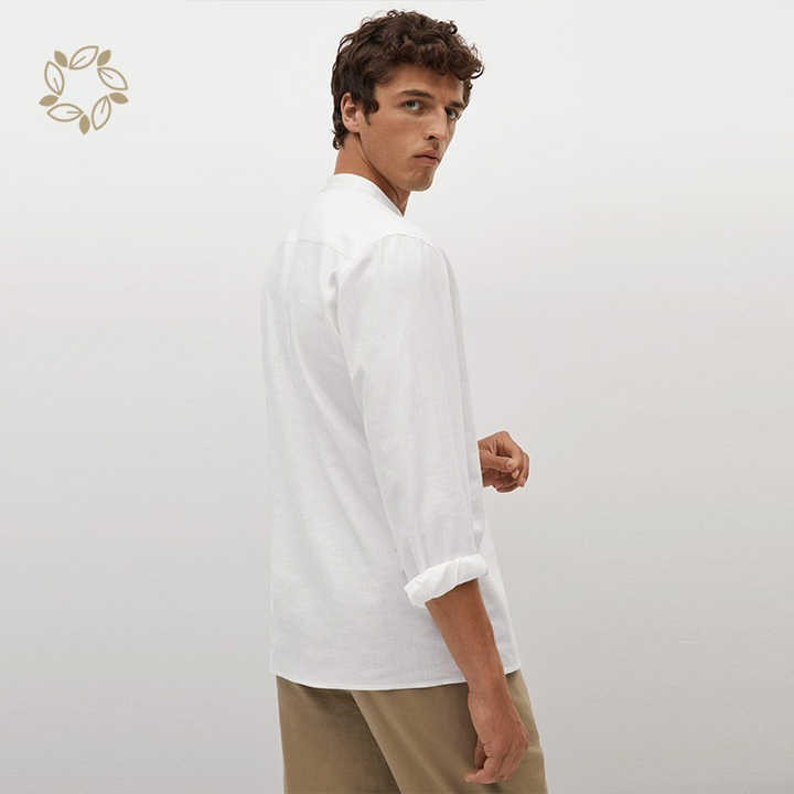 100% Linen shirts for men sustainable regular fit mao collar linen shirt men camisas long sleeve men's shirt