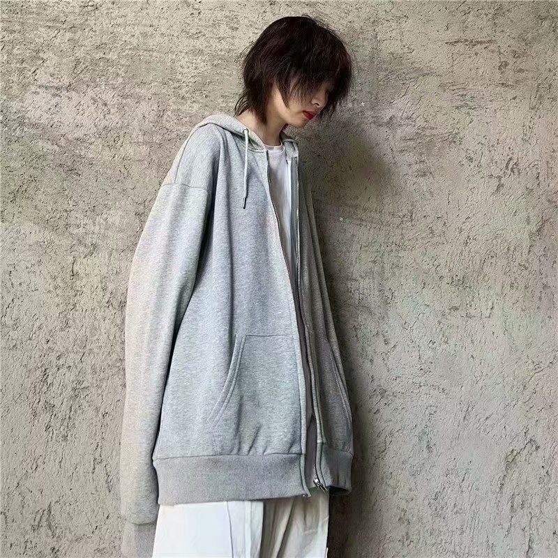 M~3XL Korean Men's Oversized Long Sleeve Sweater Fashion Solid Color Loose Zip Jacket Hoodie