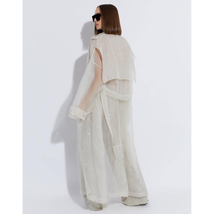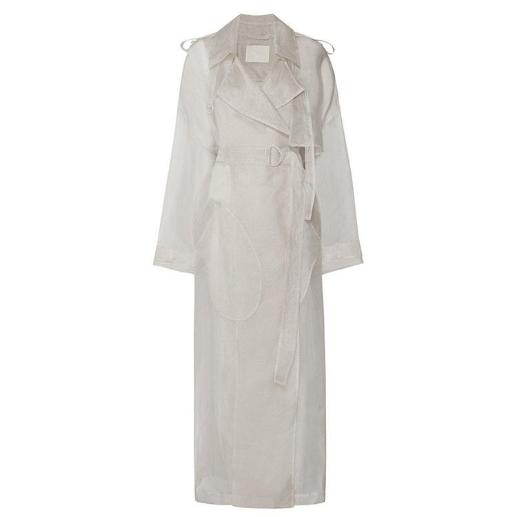 White Organza Trench Latest fashion design high quality sweet cotton waist strap custom stand collar coats for women