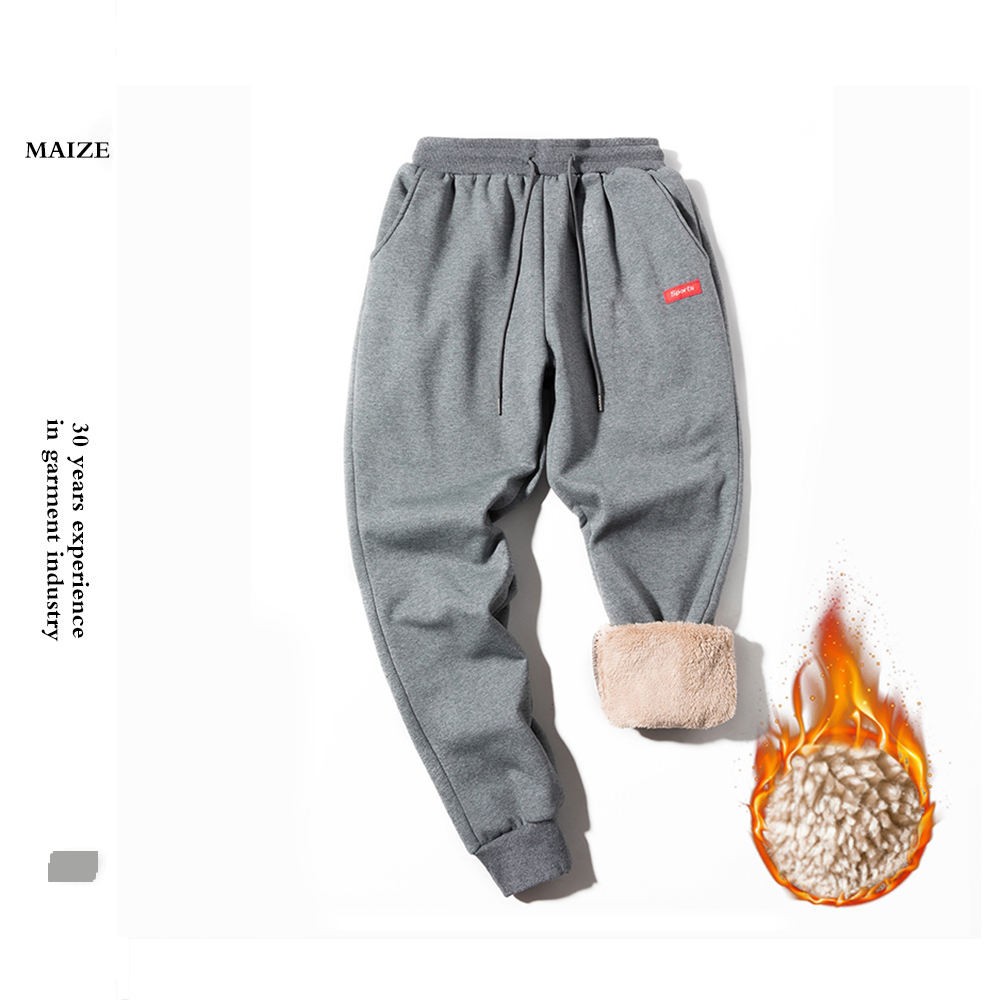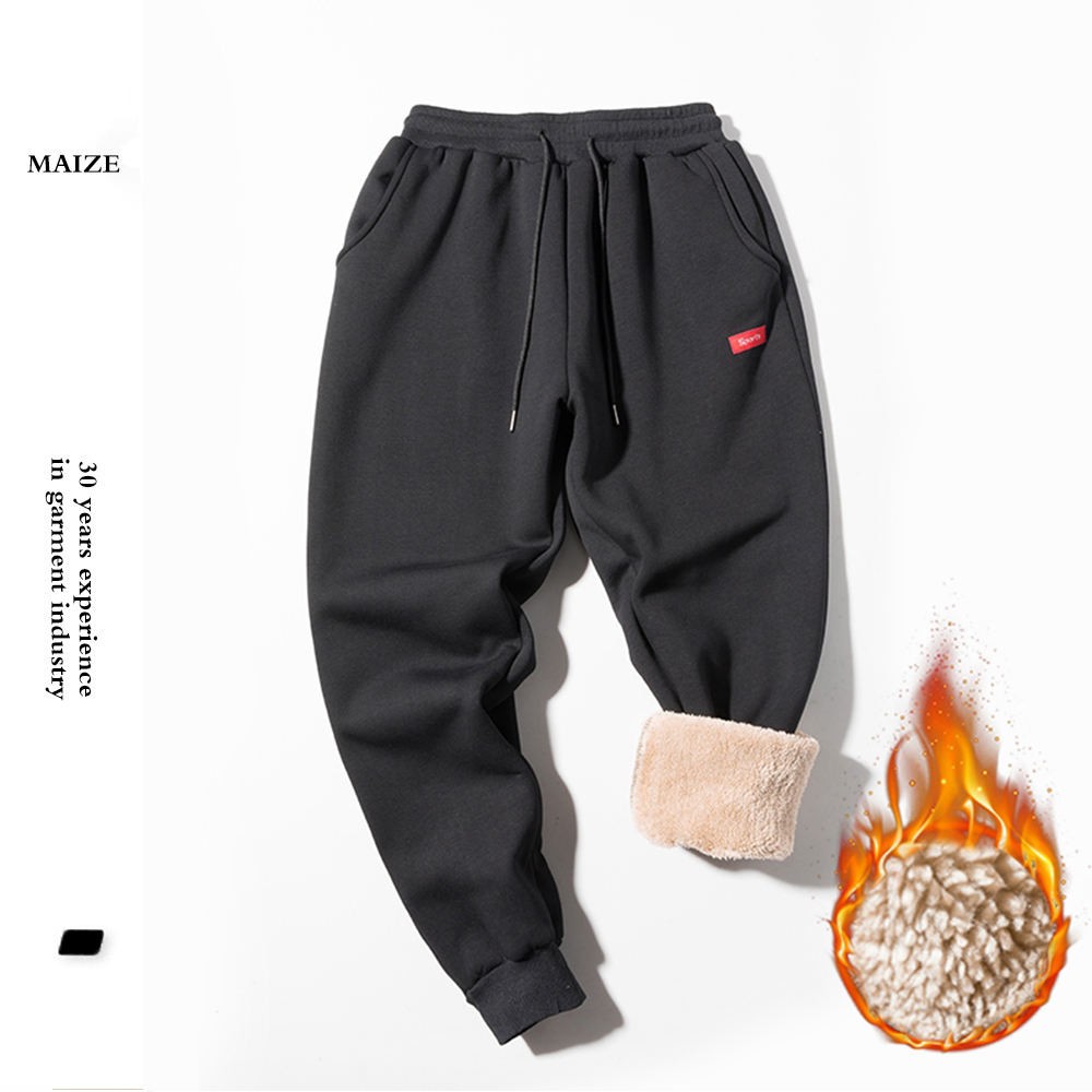 Winter Lambs Wool Lining Warm Men's Pants &Trousers Drawstring Long Sweatpants Cotton Fleece Custom Man Casual Joggers