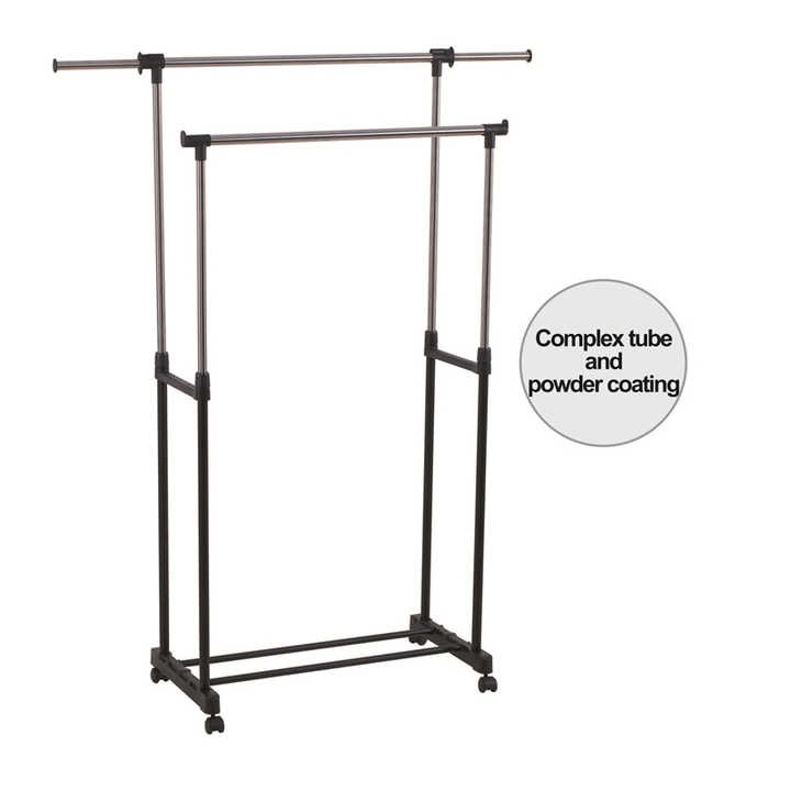 Low Price Extendable Hanger Double Rod Garment Display Rack with Shoe Rack Stainless Steel Garment Rack with Wheels